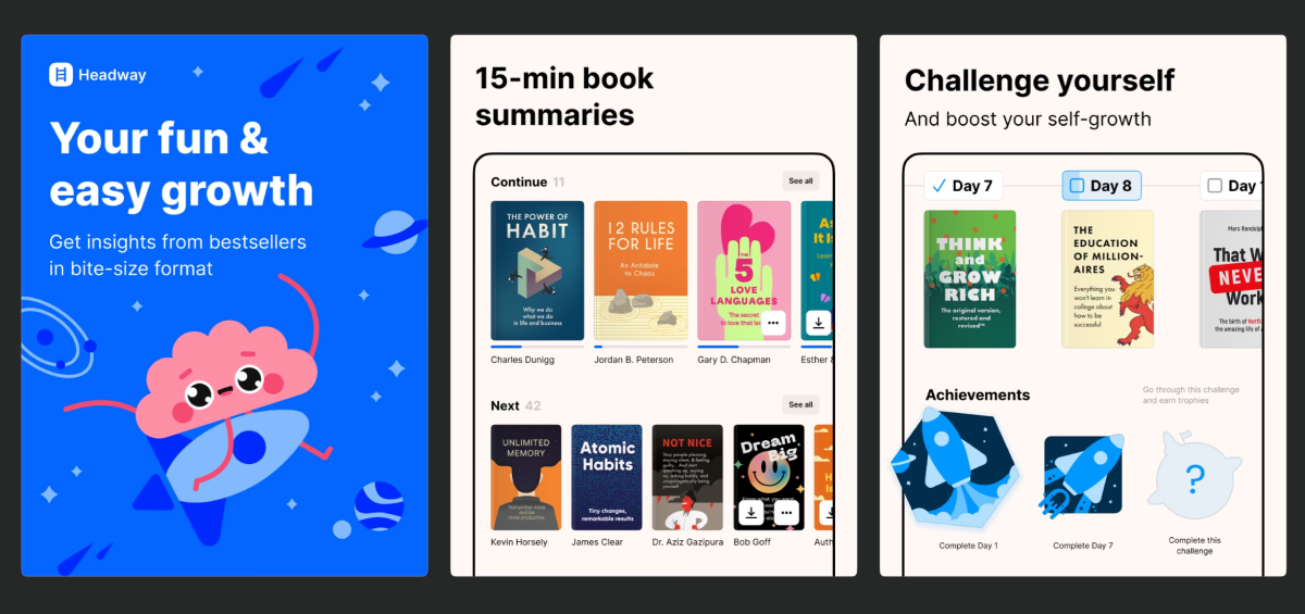 Український застосунок Headway — це ідеальний приклад використання ефекту JOMO в маркетингу. Замість годин читання повних книжок програма пропонує дізнаватися ключові інсайти та практичні поради з бестселерів на теми продуктивності, бізнесу, здоров’я тощо. У своєму маркетингу бренд підсилює відчуття радості від того, що аудиторія пропускає зайве, зберігаючи час для ключової інформації.