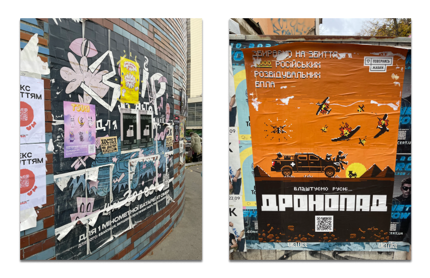 Так само почали змінюватися носії зборів, чому сприяє також Монобанк з їхніми QR-кодами. Тепер донатний дизайн перекочував на стікери, постери, афіші концертів. Деякі плакати набувають масштабів стіни.