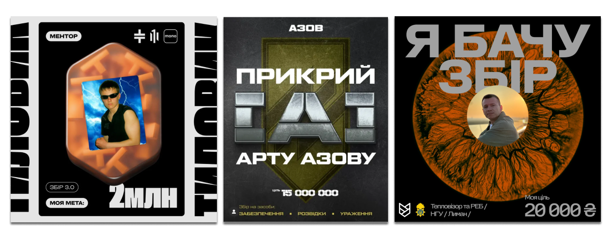 Війна — це рух. Волонтерство — це рух. Українці — це рух. Графічні дизайни для зборів це відображають — вони сміливі, яскраві, динамічні та помітні. Особливо зараз, коли їх так багато. Знаю по собі. Щоразу, коли створюєш збір на автівку чи дрони — крутиш їх так сяк, додаєш 3D, ілюстрацію, моушн.