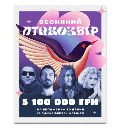 Хочу зупинитися на ілюстрації «Птахозбору». Окрім метафори польотів та птахів до БПЛА, тут виникає новий аспект. Графічний дизайнер взяла/взяв за основу асоціацію не зі зброєю, а цінністю українців і ціллю боротьби — свободою. Плюс, тут також можна простежити етнічні мотиви.