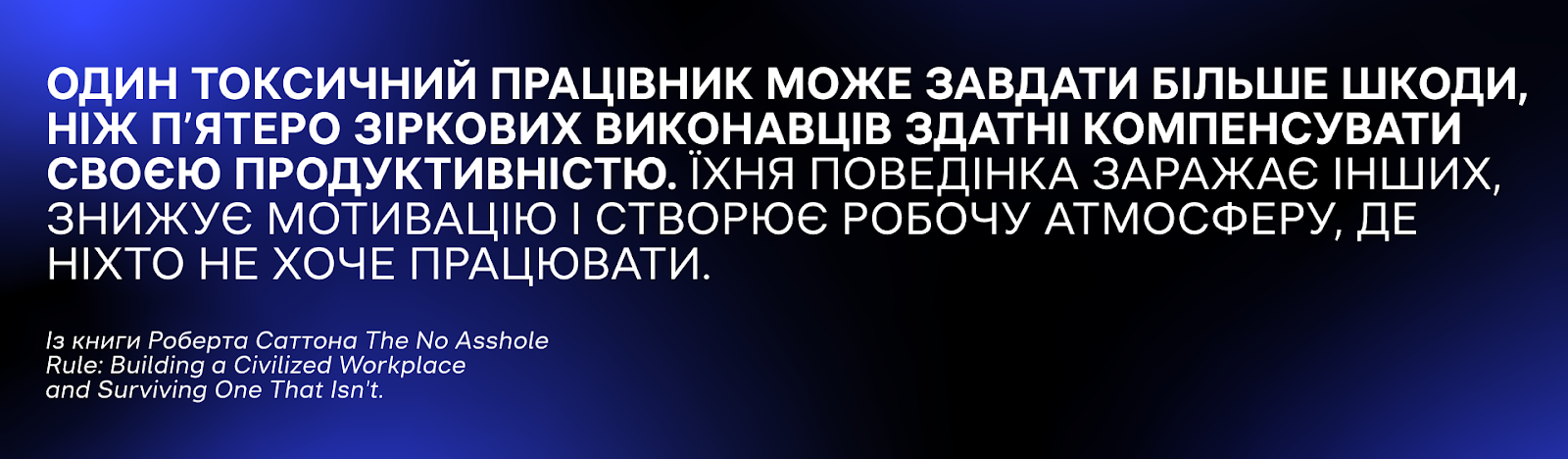 Це визначення взято із книги Роберта Саттона про мудаків (мовою оригіналу "The No Asshole Rule: Building a Civilized Workplace and Surviving One That Isn't"). Рекомендую до прочитання тим, хто хоче навчитися розпізнавати і працювати з токсичною поведінкою, особливо якщо токсик — визнаний соціумом професіонал чи ваш керівник.