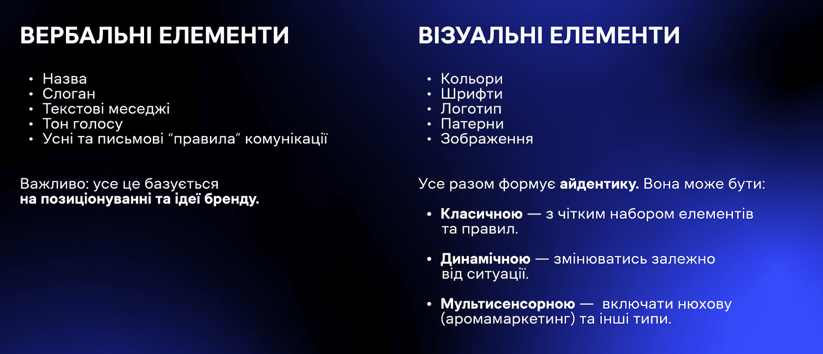Для цього кожен бренд має свою чітку структуру атрибутів, про які я вже згадувала раніше. Їх можна просто розділити на вербальні та візуальні.